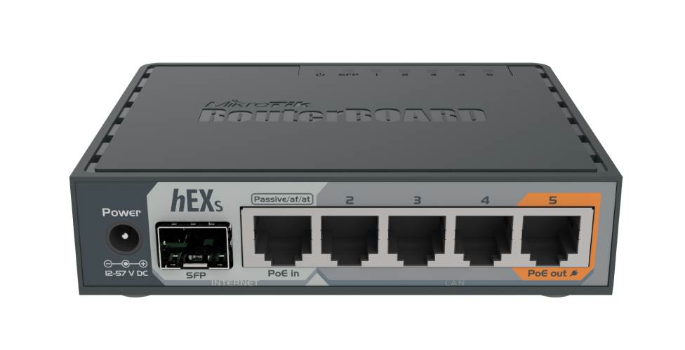 Дополнение к линейке Ethernet-роутеров в аккуратных пластиковых корпусах, 6-портовый hEX S применяется там, где не требуется беспроводная связь. Как представитель серии hEX, hEX S может похвастать SFP-портом со скоростью 1,25 Гбит/с и выходом питания PoE на последнем из 5 гигабитных портов.