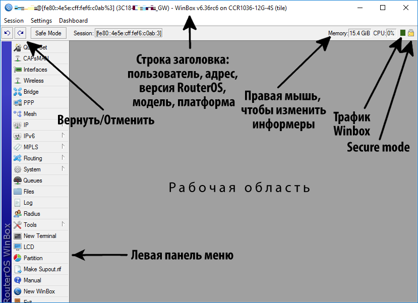 Главное окно WinBox, MDI и полезные приёмы